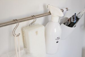 シンク周りはどうしても水が溜まりやすく汚れやすい場所ですが、浮かせる収納に変えるだけで掃除がしやすくなり、見た目もスッキリ。さらに、バーを複数使えば、用途別に“乾かしゾーン”を作ることもでき、整理整頓がしやすくなります。